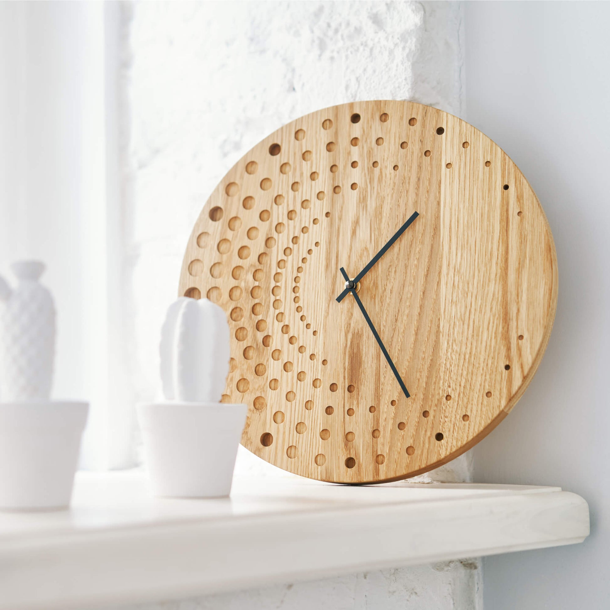 Clock made from solid oak wood, perfect for a modern home.